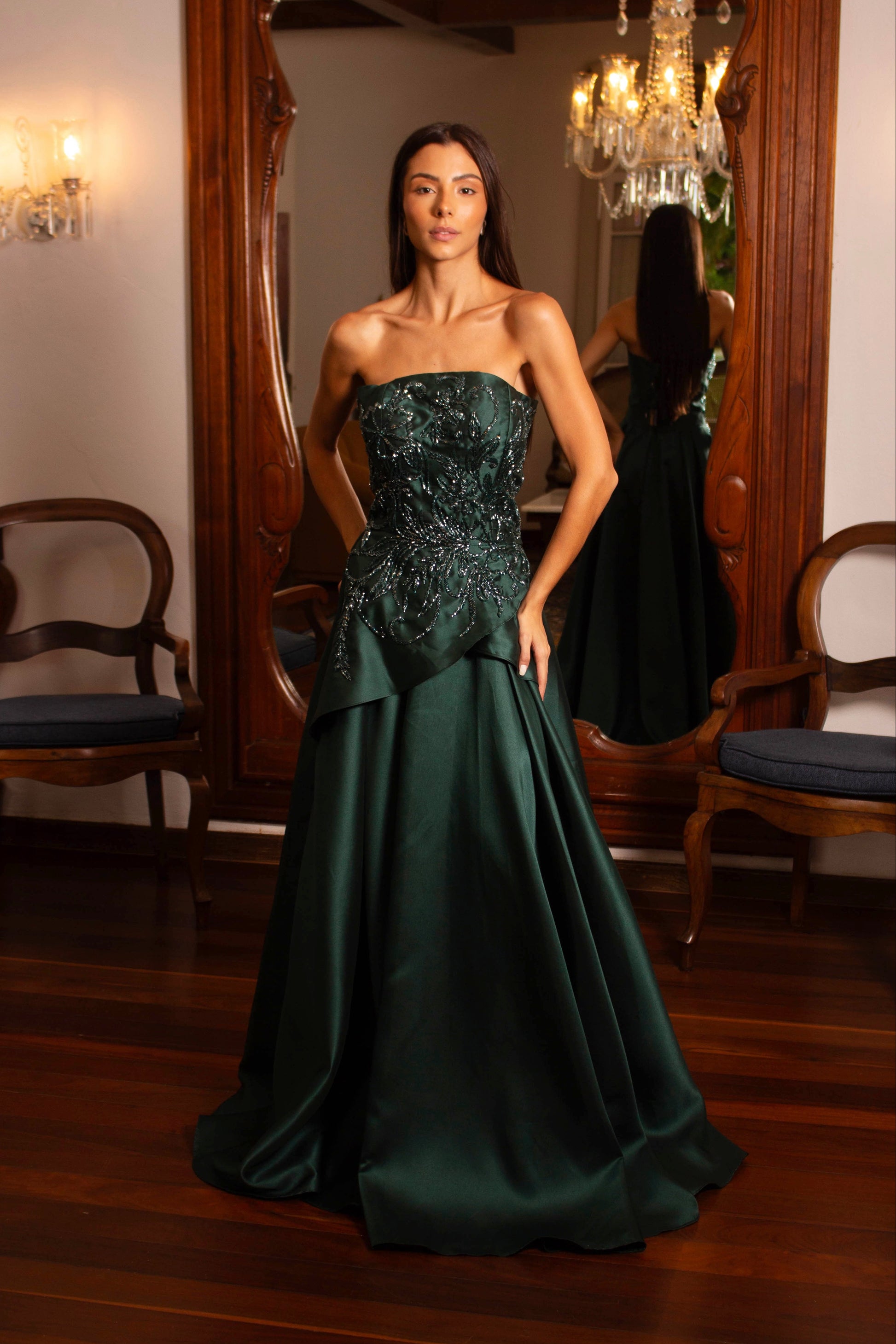 Vestido Em Zibeline, Tomara Que Caia, E Bordados Feitos À Mão.