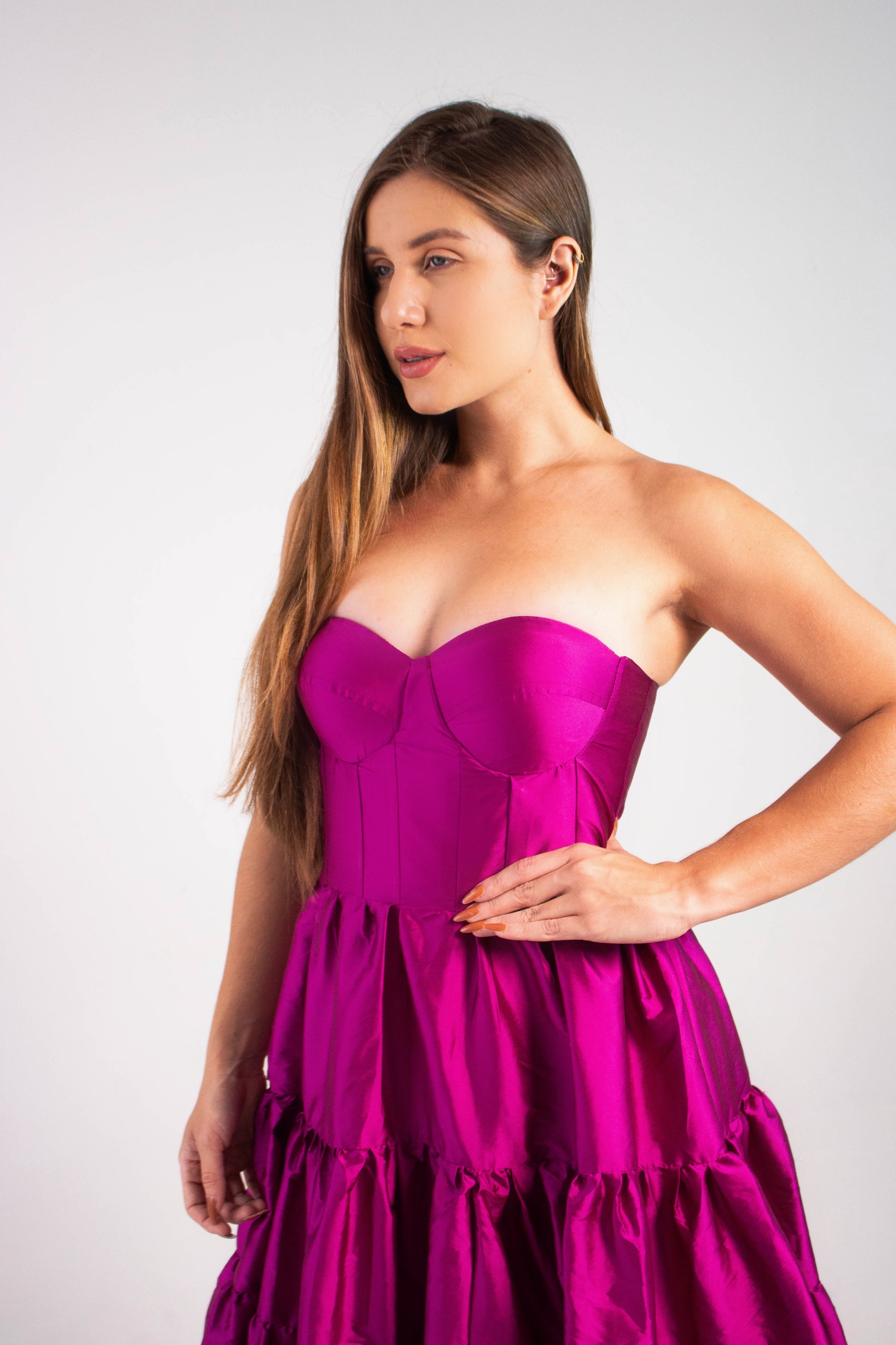 Vestido Em Tafetá Indiano Com Saia De Babados.